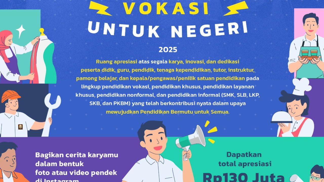 JAKARTA — Kementerian Pendidikan Dasar dan Menengah melalui Direktorat Jenderal Pendidikan Vokasi, Pendidikan Khusus, dan Pendidikan Layanan Khusus secara resmi meluncurkan program “Apresiasi Karya Vokasi untuk Negeri” tahun 2025. Program ini menjadi panggung penghargaan bagi insan pendidikan vokasi dan pendidikan layanan khusus yang selama ini telah menunjukkan kontribusi nyata melalui karya, inovasi, dan praktik baik di berbagai satuan pendidikan di Indonesia.