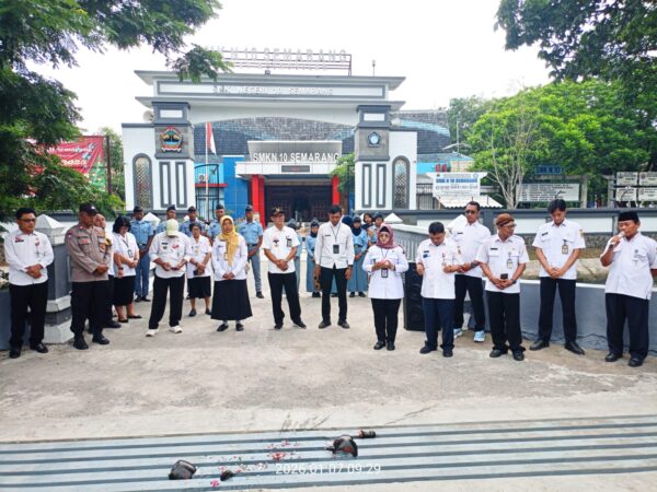 SEMARANG — SMK Negeri 10 Semarang melaksanakan upacara bendera pada hari pertama masuk semester genap tahun pelajaran 2025/2026, Senin, 5 Januari 2026. Kegiatan ini dilaksanakan di halaman sekolah dan diikuti..