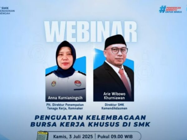 Jakarta – Direktorat Sekolah Menengah Kejuruan (SMK) Kementerian Pendidikan, Kebudayaan, Riset, dan Teknologi bersama Kementerian Ketenagakerjaan RI menggelar webinar nasional bertajuk “Penguatan Kelembagaan Bursa Kerja Khusus (BKK) di SMK” pada..
