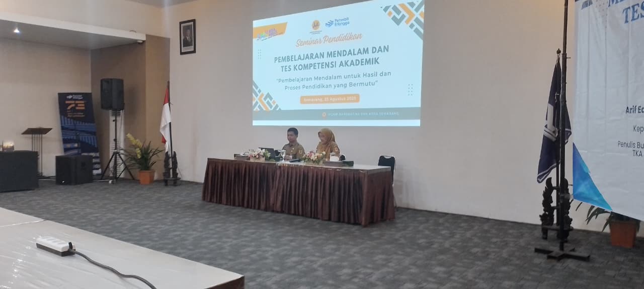 Semarang – Para guru matematika SMK di Kota Semarang menggelar kegiatan bertajuk Seminar Pembelajaran Matematika: Menguasai Deep Learning dan Tes Kompetensi Akademik pada Senin, 25 Agustus 2025. Acara berlangsung di ruang pertemuan Penerbit Erlangga Kota Semarang mulai pukul 09.00 WIB dan diikuti oleh puluhan peserta yang merupakan anggota MGMP Matematika SMK Kota Semarang, serta beberapa tamu undangan dari MGMP Matematika Kabupaten Pekalongan.