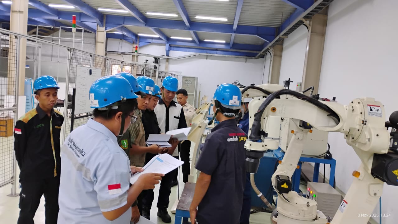Bekasi, 3 November 2025 — Mohammad Yunan Setyawan, S.Pd., Guru Teknik Pengelasan SMK Negeri 10 Semarang, bersama guru-guru SMK dari berbagai daerah di Indonesia mengikuti Program Kredensial Mikro Guru bidang pengoperasian robot las industri yang berlangsung di Unggul Daihen Welding Technology Center, Kawasan Industri Delta Silicone 1, Cikarang, Bekasi, Jawa Barat.