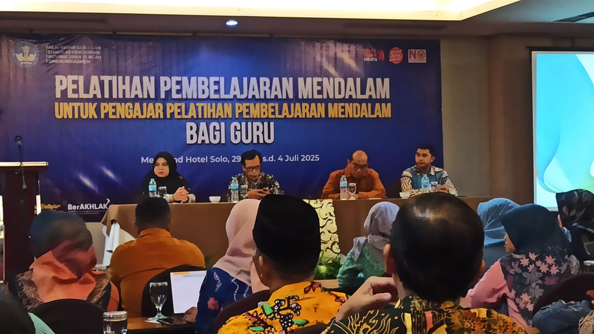 Pelatihan Pembelajaran Mendalam untuk Pengajar resmi dibuka pada Minggu siang, 29 Juni 2025, pukul 13.00 WIB oleh Kepala Balai Besar Guru Penggerak dan Tenaga Kependidikan (BBGTK) Jawa Tengah yang diwakili oleh Ketua Tim Kerja Data dan Informasi BBGTK Jateng, Wawan Budi Purnomo. Kegiatan ini merupakan langkah strategis dalam menyiapkan para pengajar Pelatihan Pembelajaran Mendalam bagi guru-guru di seluruh Indonesia, sebagai bagian dari upaya besar menyongsong Indonesia Emas 2045.