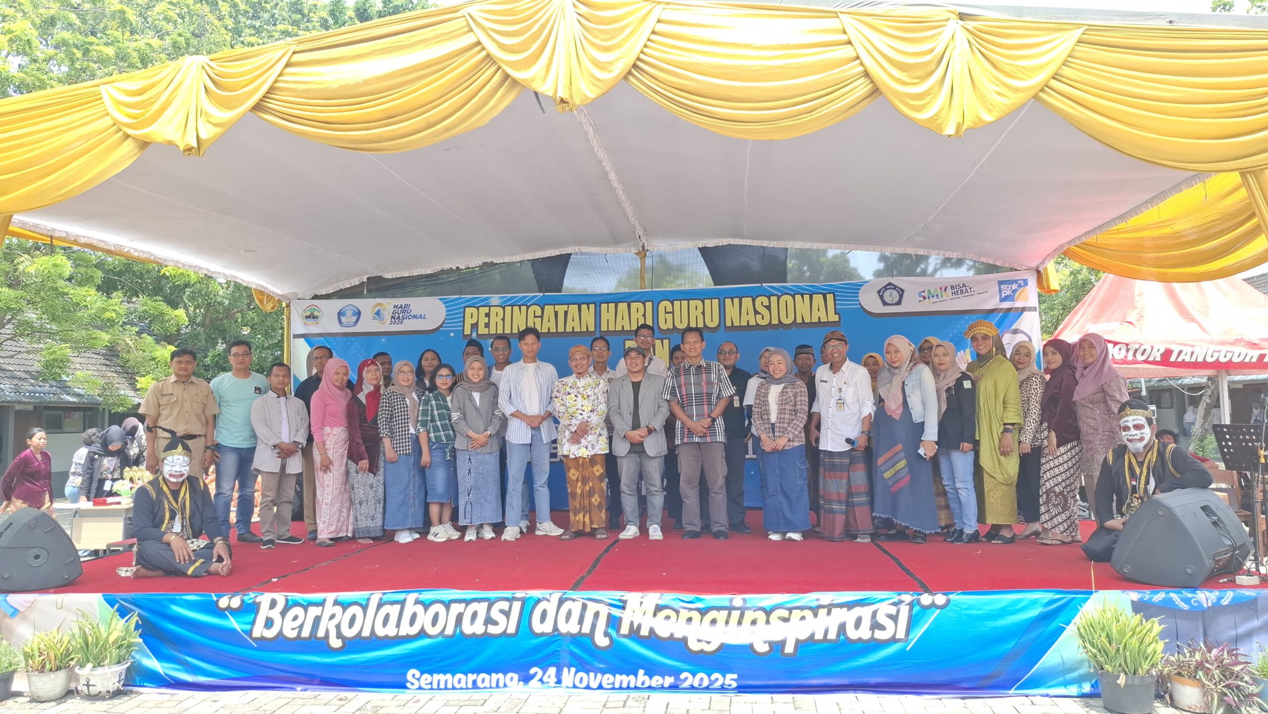 Suasana semakin semarak karena acara dipandu oleh dua guru berkostum tokoh punakawan Gareng dan Bagong, yakni Beni Legowo dan Andi Triacahyono. Kehadiran keduanya menghadirkan nuansa budaya sekaligus humor segar yang membuat para peserta antusias sejak awal. Panggung pun semakin hidup ketika para guru dari berbagai jurusan, mulai dari TP, Manlog, TKR, TBKR, TSM, TPK, RPL, hingga tim manajemen, tampil menunjukkan bakat mereka. Berbagai penampilan, mulai dari drama, musik, hingga tarian modern, menggambarkan betapa para guru tidak hanya mengajar, tetapi juga mampu menghibur dan menginspirasi. Panitia turut membagikan door prize untuk menambah kemeriahan acara.