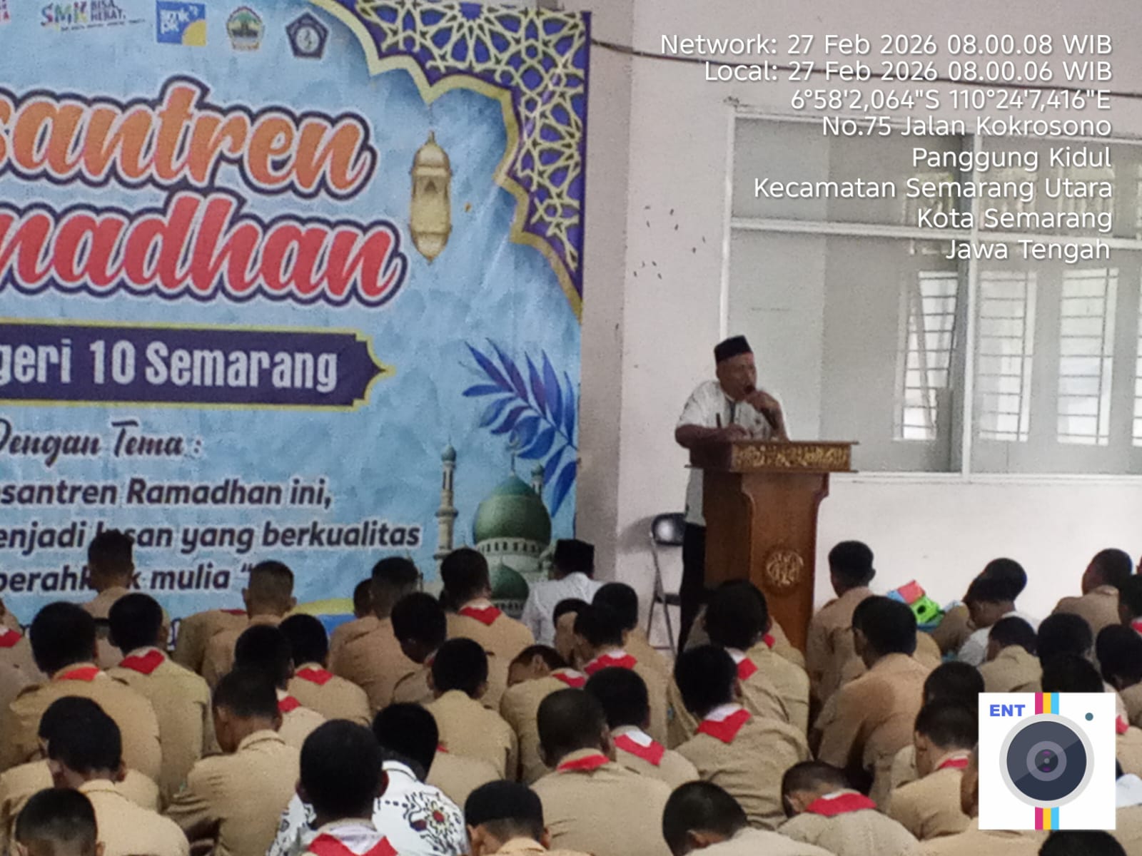 SEMARANG — Mengawali pagi Sayyidul Ayyam Jumat, 27 Februari 2026, keluarga besar SMK Negeri 10 Semarang menggelar kegiatan keagamaan berupa salat Dhuha berjamaah dan kuliah tujuh menit (kultum) sebagai ungkapan syukur karena kembali dipertemukan dengan bulan suci Ramadhan 1447 Hijriah. Kegiatan yang berlangsung sejak pagi hari di lingkungan sekolah tersebut diikuti oleh jajaran guru, tenaga kependidikan, serta para siswa dengan suasana khidmat dan penuh kekhusyukan.