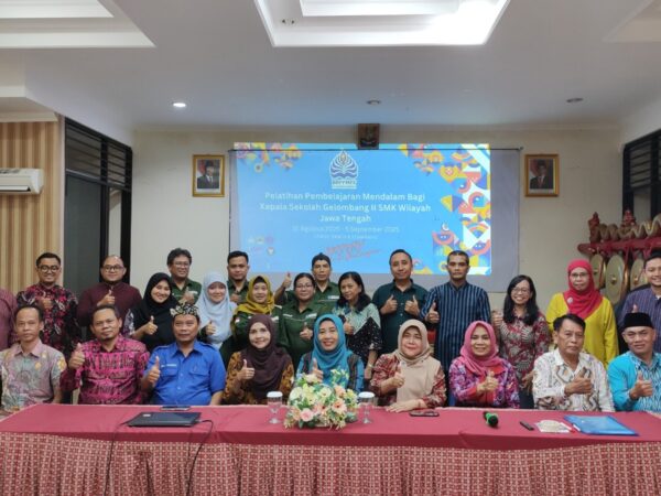 Semarang – Suasana penuh semangat menyelimuti Aula SMK Negeri 6 Semarang pada Kamis, 4 September 2025. Di tempat inilah digelar acara penutupan Pelatihan Pembelajaran Mendalam bagi Kepala Sekolah SMK Gelombang..